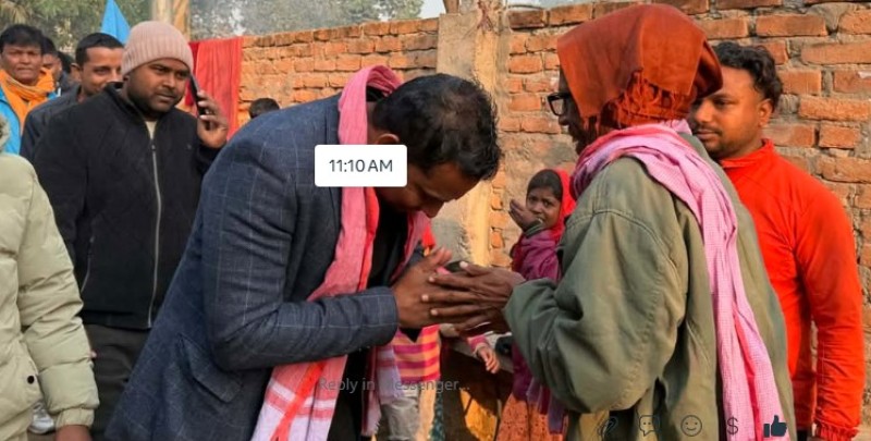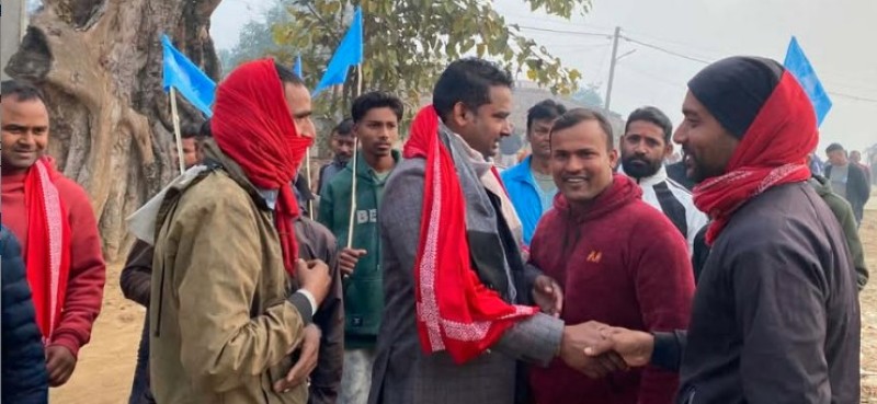 पर्सा–१ मा उज्यालो नेपाल पार्टीका उम्मेदवार रामकिशोर सिंहद्वारा टोलवासीसँग भेटघाट